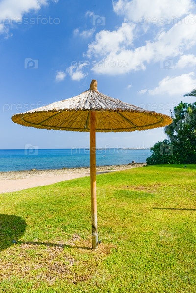 Зонтик из соломы на море