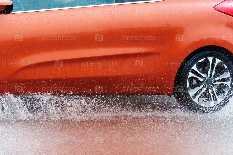 Брызги из-под колес автомобиля