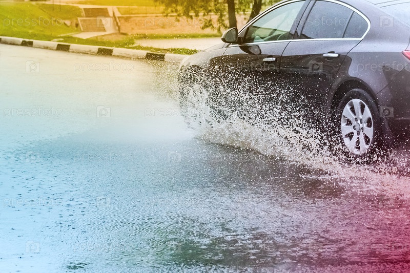Брызги из-под колес автомобиля