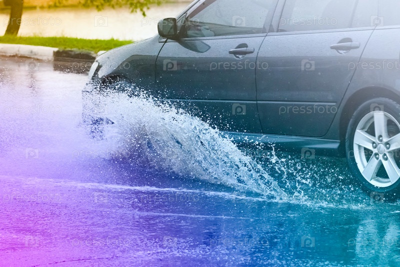 Брызги из-под колес автомобиля