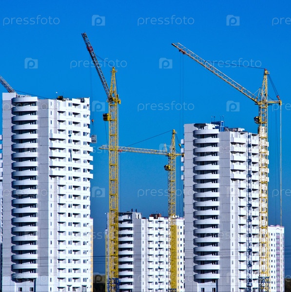 Строительство нового высокого дома с помощью крана