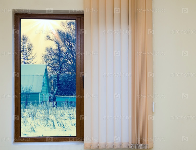 Вид из окна с жалюзи