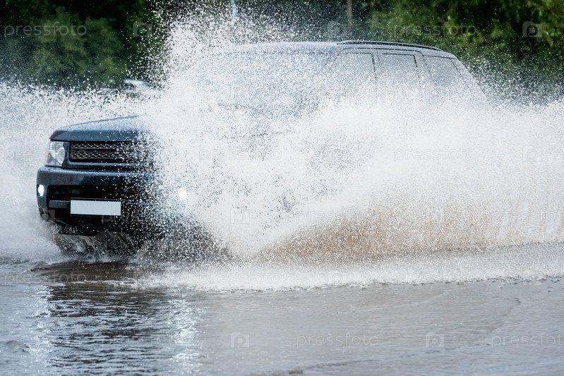 Брызги из-под колес автомобиля
