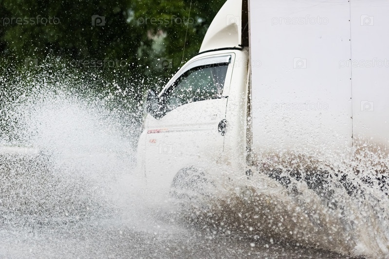 Брызги из-под колес автомобиля