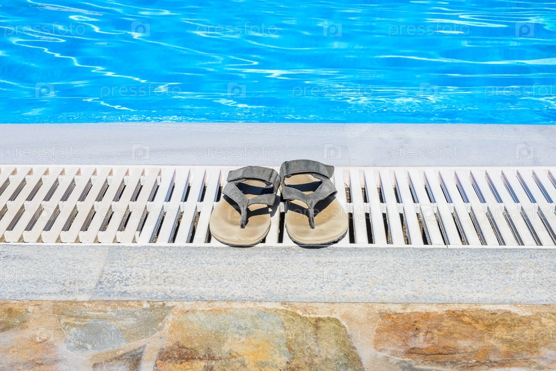 Кожаные сандалии на краю бассейна