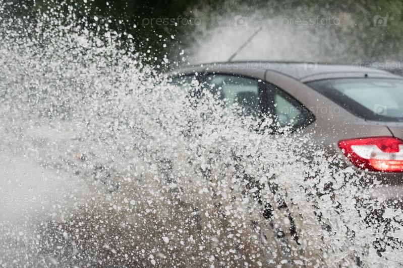 Брызги из-под колес автомобиля