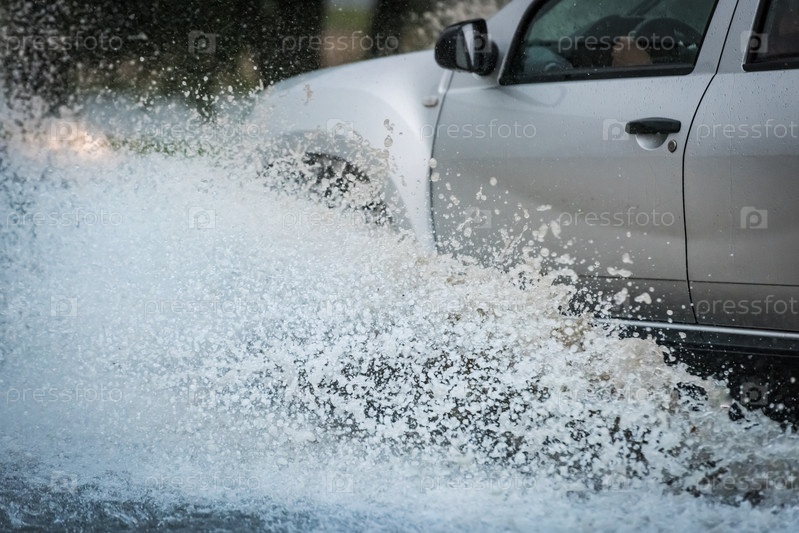Брызги из-под колес автомобиля