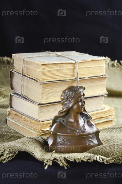 Бронзовый бюст и старые книги