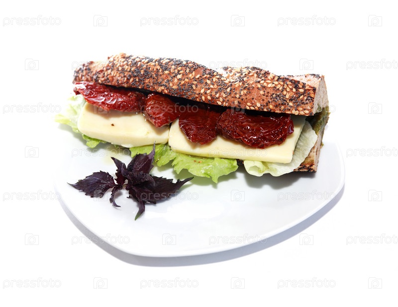 Вкусный сэндвич на белом фоне