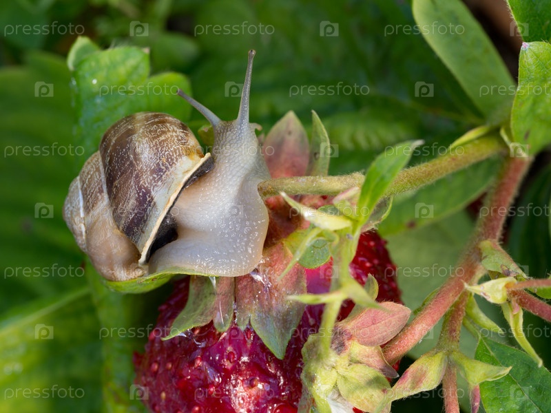 Улитка на землянике