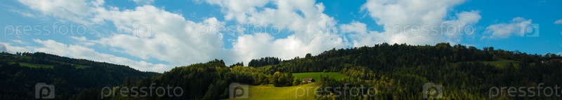 Ярко-зеленые луга и голубое небо