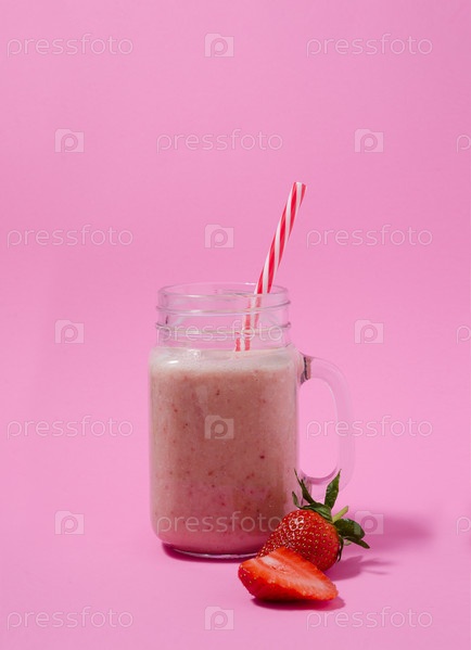 Розовое клубничное пюре в баночке