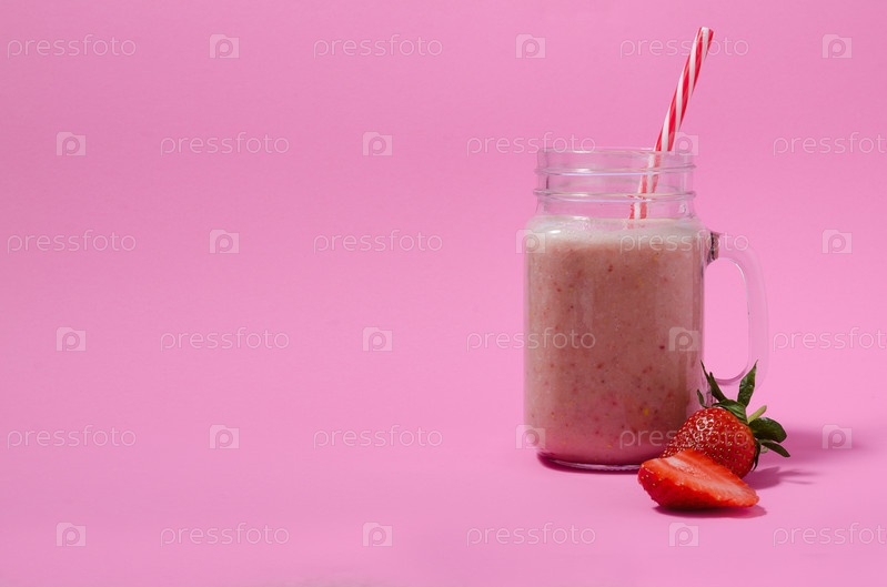 Розовое клубничное пюре в баночке