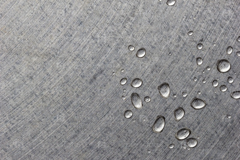 Капли воды в углу на металлической серой поверхности