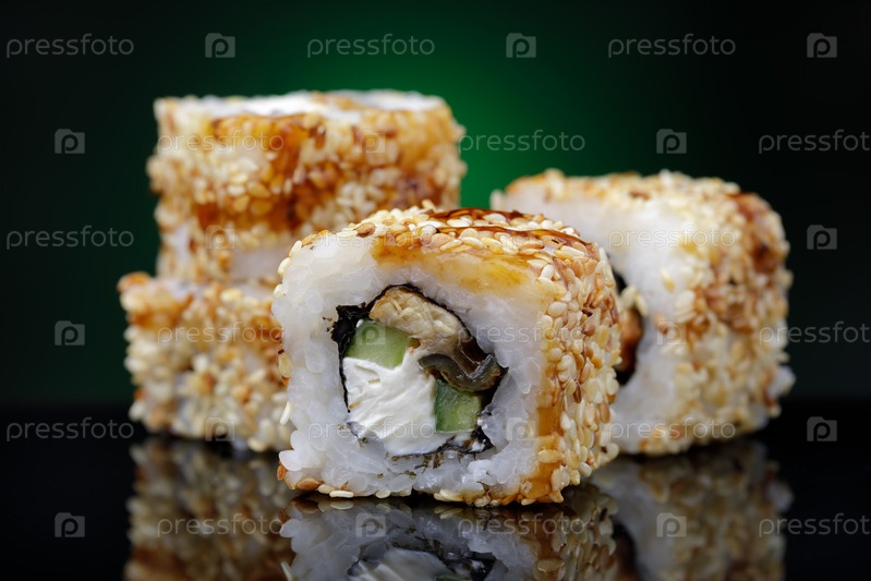 Рулоны Унаги маки с огурцом, угрем, кунжутом