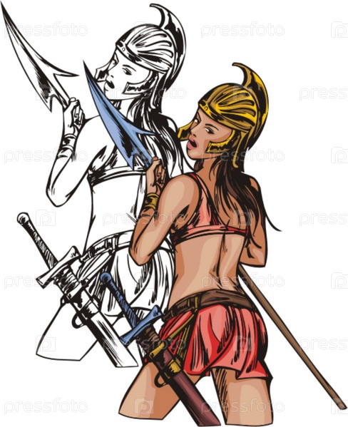 Рисунок амазонки с копьем