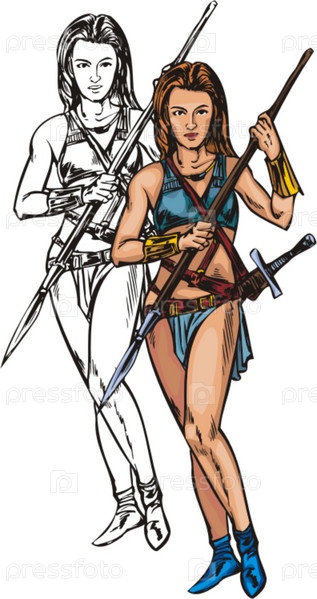 Рисунок амазонки с копьем