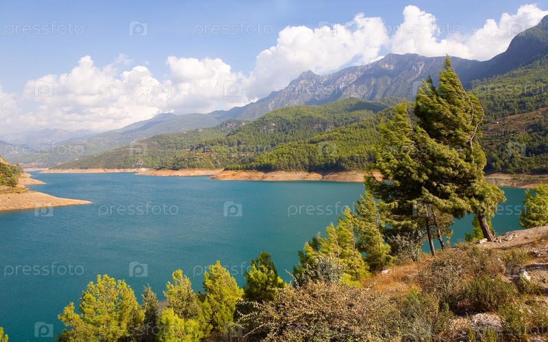 Водоем и горы на заднем плане