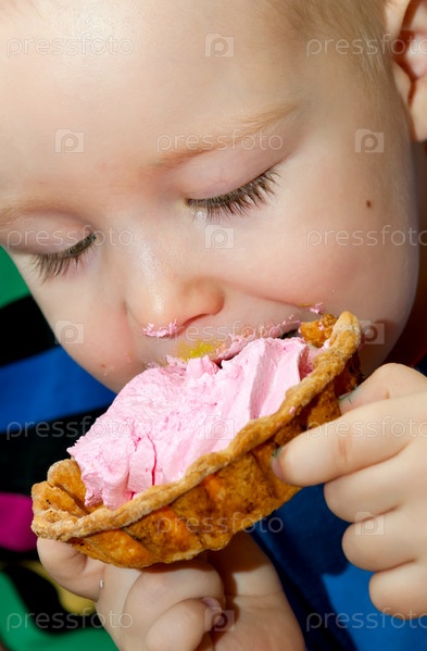 Маленький мальчик ест пирожное