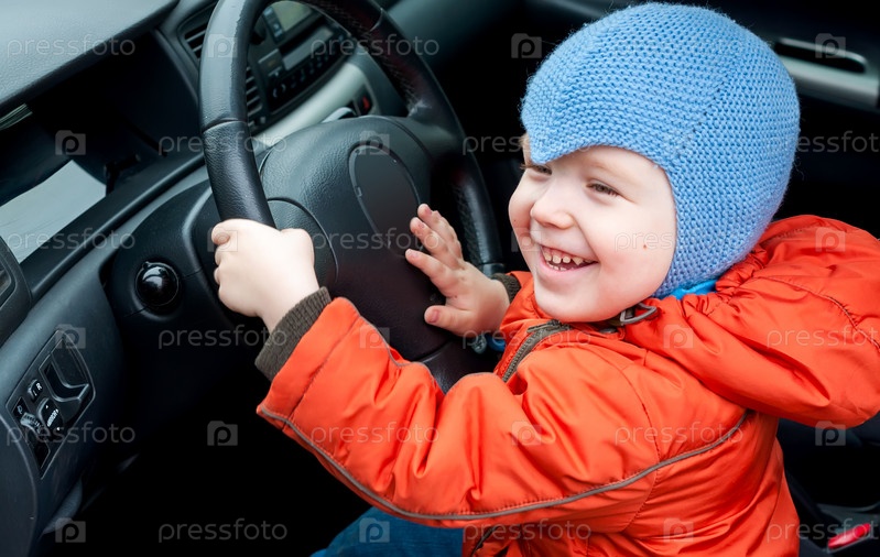 Мальчик в машине за рулем