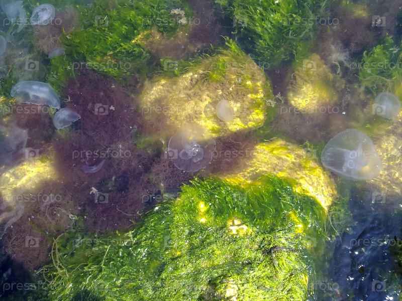 Медузы в водорослях у побережья Черного моря