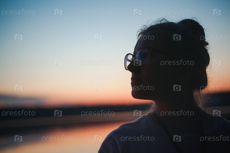 Силуэт девушки в очках на закате