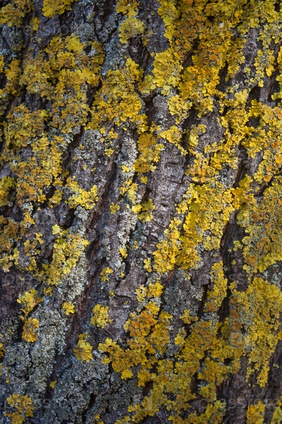 Желтый мох на коре дерева осенью