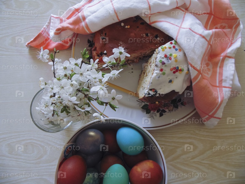 Красочные яйца и кулич для Пасхи