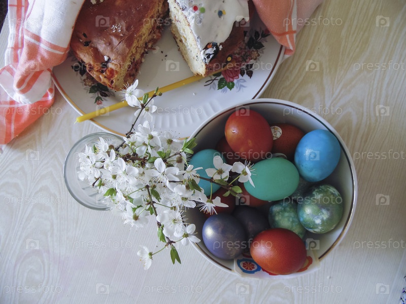 Красочные яйца и кулич для Пасхи