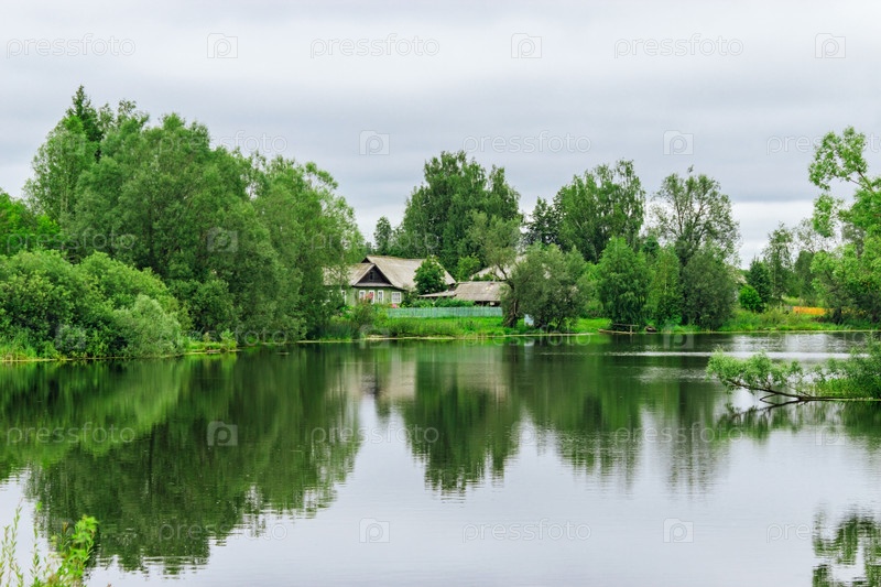 Русская деревня на берегу озера