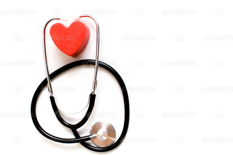 Красное сердце и стетоскоп на столе