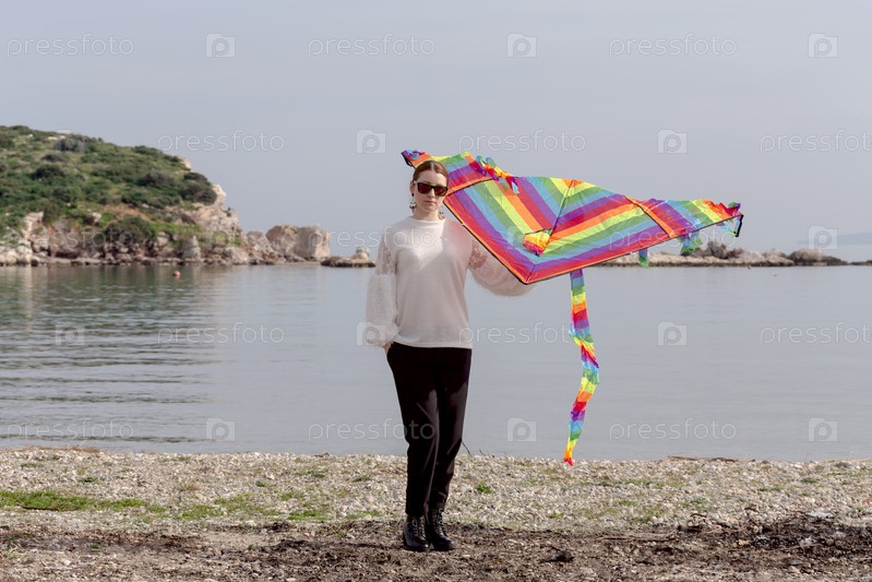 Молодая женщина с воздушным змеем
