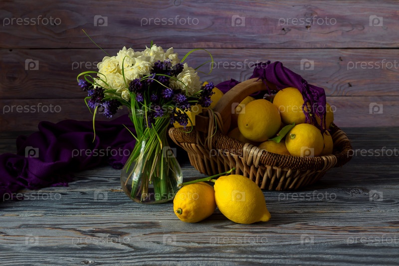 Полевые цветы в вазе и лимоны