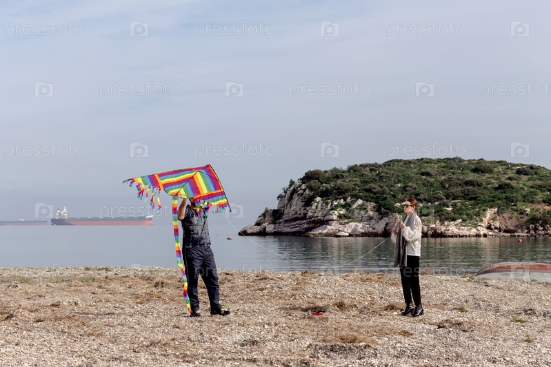 Молодой человек и девушка с воздушным змеем