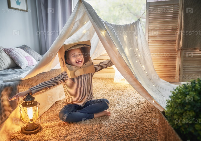 Ребенок играет в палатке