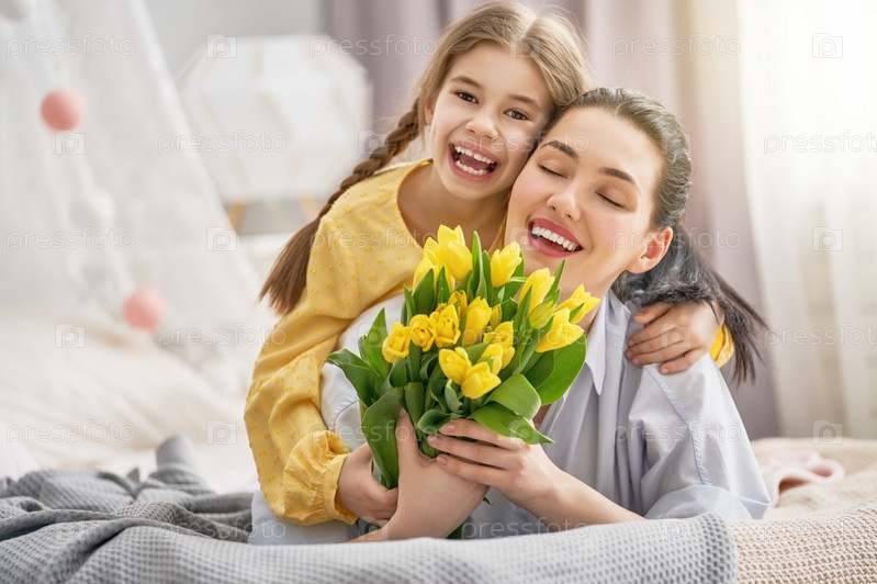 Дочь поздравляет маму