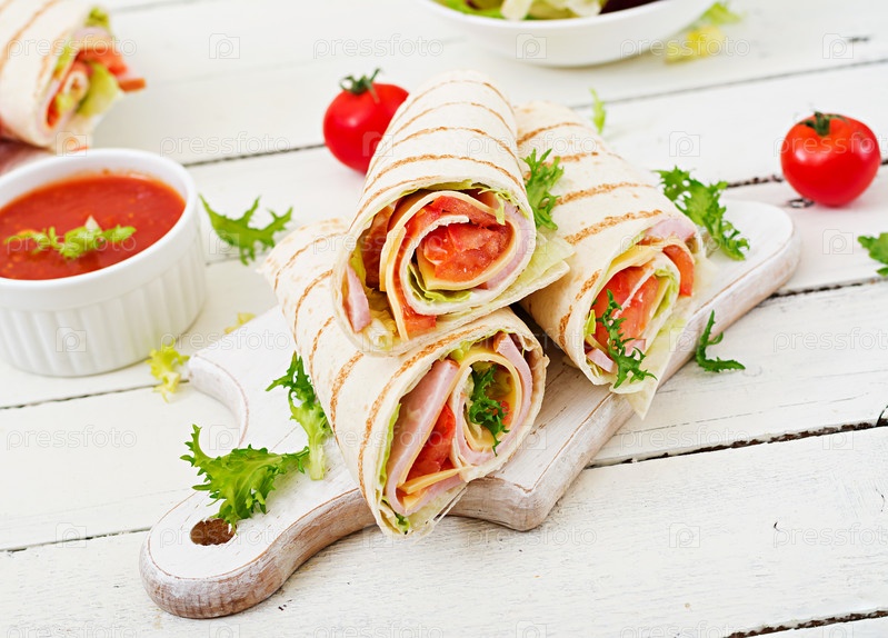 Рулетики с ветчиной, сыром и помидорами