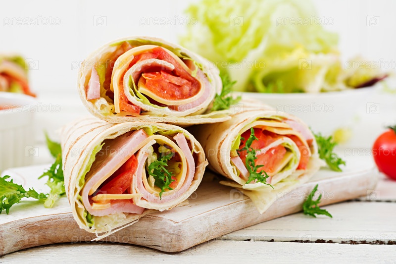 Рулетики с ветчиной, сыром и помидорами