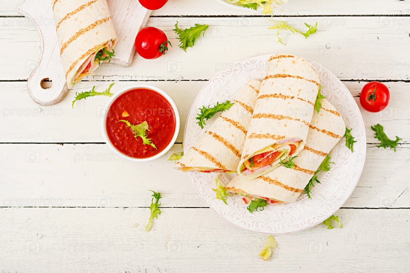 Рулетики с ветчиной, сыром и помидорами
