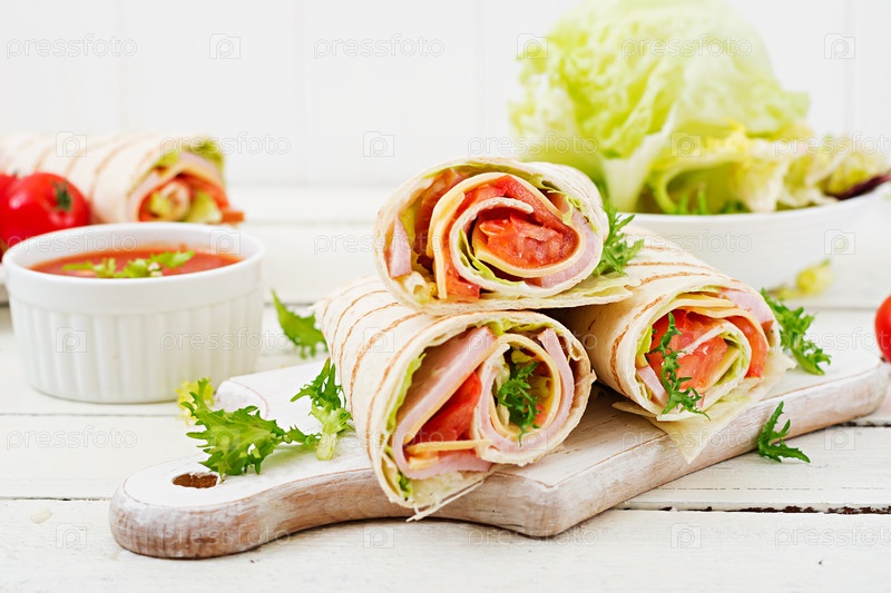 Рулетики с ветчиной, сыром и помидорами