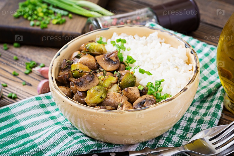 Диетическое питание. Вареный рис с грибами
