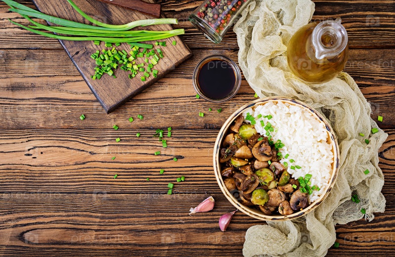 Диетическое питание. Вареный рис с грибами
