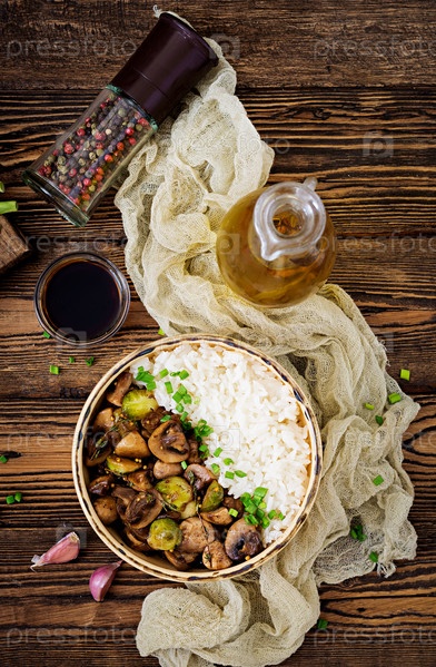 Диетическое питание. Вареный рис с грибами