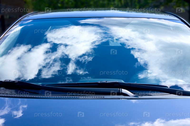 Отражение неба на ветровом стекле машины