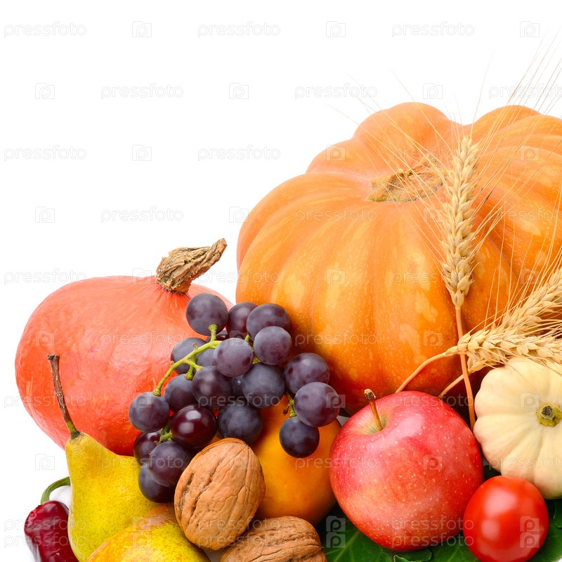 Фрукты и овощи, изолированные на белом фоне
