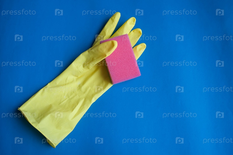 Резиновые перчатки и губка для чистки