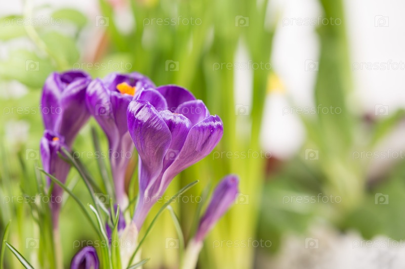 Свежие яркие фиолетовые крокусы