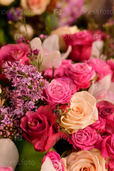 Цветы сирени и розы