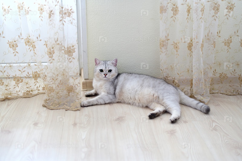 Породистый кот на полу в комнате