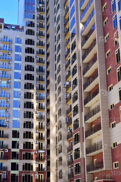 Фасад современного жилого дома в Москве, Россия